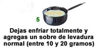 - 5) Debe quedar a temperatura ambiente, para echar el sobrecito de levadura. Si aún está caliente ESPERA, o puede fallar, porque las levaduras se queman al pasar de los 60º centígrados.