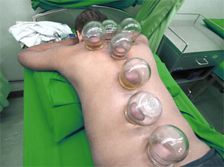 Maxibustion (oder Moxibustion): Dabei handelt es sich um die Anwendung von Wärme auf einen von Kontrakturen betroffenen Bereich. Es werden jedoch auch andere Arten von Muskelbeschwerden, Hautproblemen usw. behandelt, bei denen die Durchblutung angeregt werden muss. Ursprünglich wurde sie mit Saugnäpfen durchgeführt, wobei zwei Faktoren eine Rolle spielen: Die Temperatur des Saugnapfs, der mit einem in Alkohol getränkten und angezündeten Tupfer erhitzt wird, und das Vakuum, das beim Abkühlen entsteht und die Haut und das Muskelgewebe „ansaugt“. Es ist einfach, aber es ist nicht empfehlenswert, es ohne Wissen und therapeutische Kriterien durchzuführen. Eine schlecht durchgeführte Therapie kann wehtun, brennen und Spuren hinterlassen, die erst nach längerer Zeit verschwinden, ohne dass sie ihr Ziel erreicht hat. Physiotherapeuten und Masseure wenden es beispielsweise zur Entspannung des Rückens an und erzielen damit hervorragende Ergebnisse. Andere Formen der Wärmeanwendung wie Kerzen, heiße Schüsseln usw. fallen ebenfalls in diese Kategorie, Saugnäpfe sind jedoch am wirksamsten.