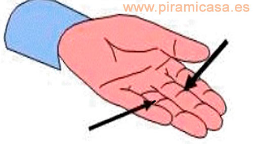 PÁNCREAS: El páncreas (2) se representa en el centro y un poco por encima del pliegue proximal de la palma, conocido en quiromancia como la "línea de la vida". Allí se localiza el dolor en los pacientes diabéticos o con otra sintomatología pancreática.