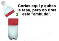 Esta trampa casera para moscas, mosquitos, etc., es mejor que cualquier producto químico o repelentes para el hogar, e incluso funciona de maravilla en patios, talleres, oficinas, o cualquier lugar. Los repelentes sólo hacen eso, "repeler", pero no matan ni eliminan a estos molestos insectos. Su efecto pasa en unas horas y si tienes mosquitos en el dormitorio será muy difícil que puedas conseguir un repelente que dure toda la noche sin asfixiarte, intoxicarte, etc. Esta trampa elimina a cada insecto y su eliminación contribuye ecológicamente en cualquier parte del mundo. Es tan económica y tan eficaz, que de todas las trampas para insectos que hemos probado, se lleva el primer premio. Se fabrica con una botella de plástico. Desde ya que no sólo puede hacerse con una de Caca-Cola, ni es preciso comprarla, se puede encontrar en la basura, o sea que puede tener costo cero en cuanto al envase. Las botellas de Caca-Cola son especialmente buenas para esta trampilla por su forma, ya que al cortarlas un poco más abajo del borde superior del estriado de la etiqueta, luego encajan bien sin caer dentro... Pero veamos exactamente cómo se hace. Ponemos el texto por si quieres traducirlo a otro idioma con Google Traslate.