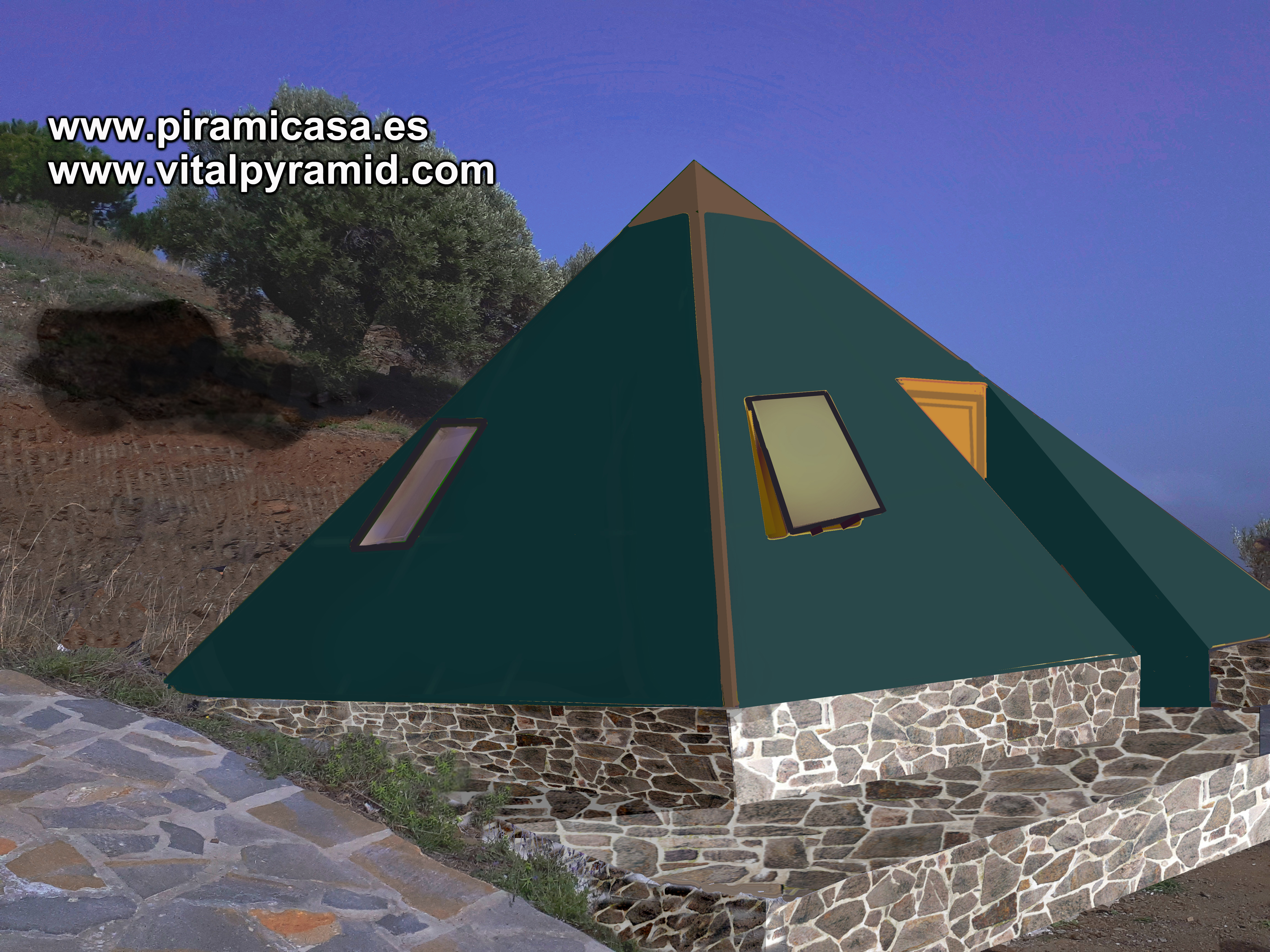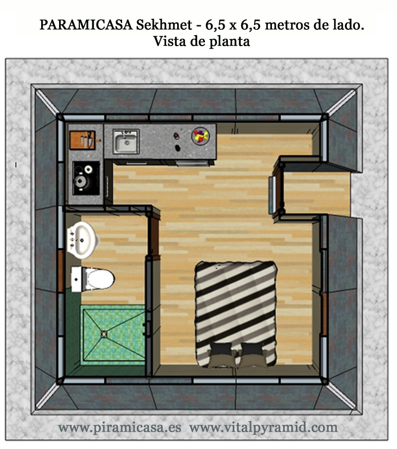 Las Pirámides modelo Sekhmet pueden tener 5 o 6 metros de lado (25 y 36 m², escasa diferencia de precio).