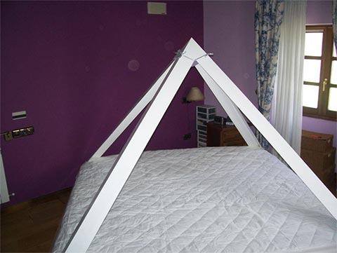 Wir bieten zwei Möglichkeiten: Die erste und am meisten empfohlene ist die Installation durch qualifiziertes Personal von Piramicasa. In diesem Fall kümmern wir uns um alles, einschließlich der Überprüfung der geobiologischen Bedingungen des Standorts. Beinhaltet das komplette Pyramidenbett plus die gewählten Optionen. Diese Option gilt für Spanien, Portugal und Südfrankreich, kann aber auch an diese drei Orte versendet werden. Wenn Sie die Installation in einem anderen Land wünschen, kontaktieren Sie uns bitte.